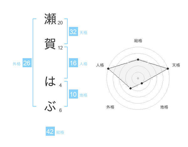 瀬賀 はぶさんの天格は32画の5点!