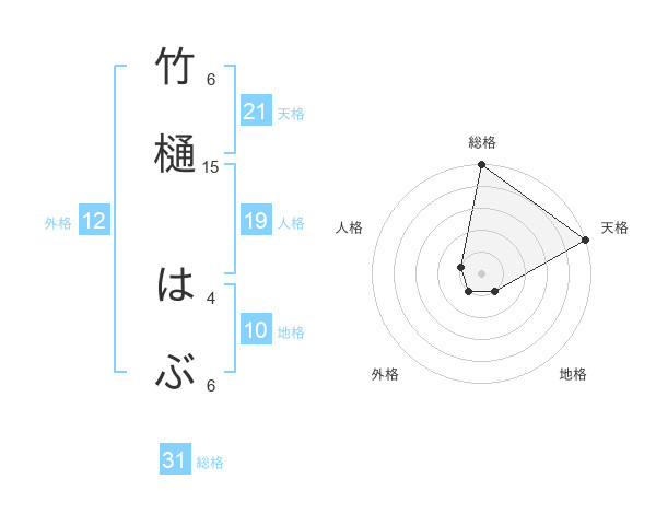 竹樋 はぶさんを姓名の画数から五運を鑑定