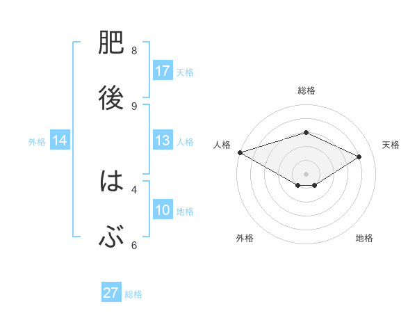 肥後 はぶさんを姓名の画数から五運を鑑定