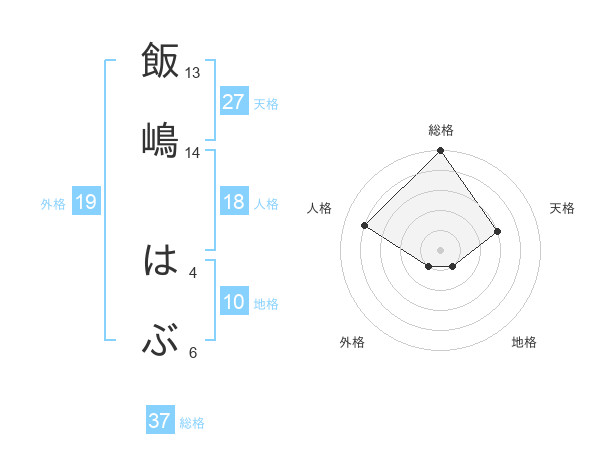 飯嶋 はぶさんの総格は37画の5点!