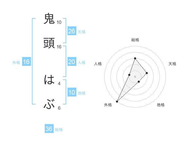 鬼頭 はぶさんの外格は16画の5点!