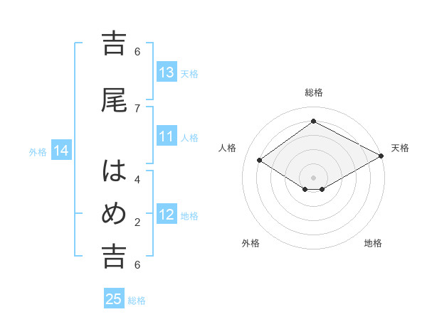 吉尾 はめ吉さんの総格は25画の4点!