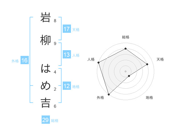岩柳 はめ吉さんを姓名の画数から五運を鑑定