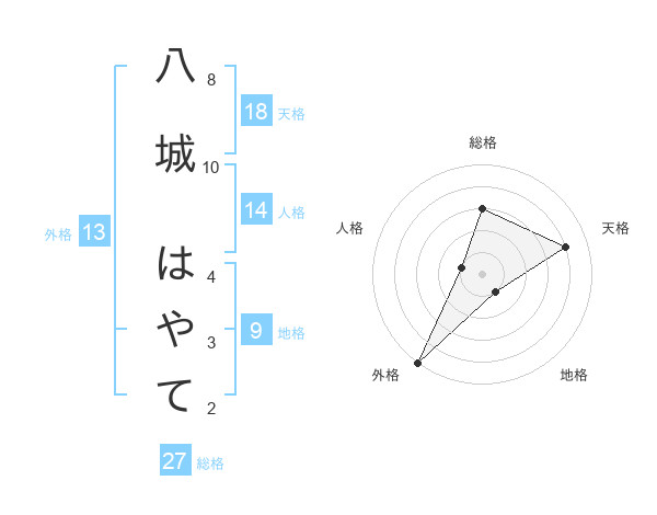 八城 はやてさんの外格は13画の5点!