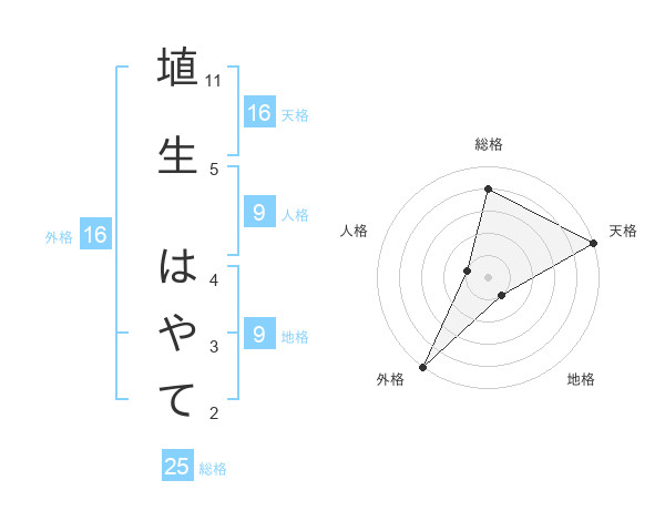 埴生 はやてさんの天格は16画の5点!