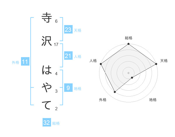 寺沢 はやてさんを姓名の画数から五運を鑑定