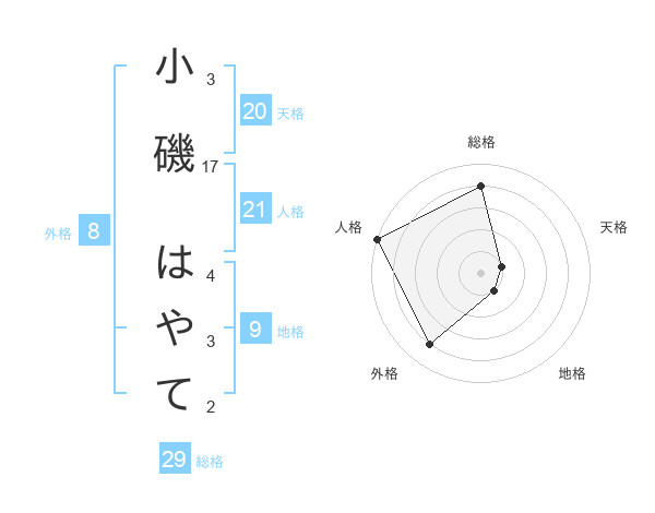 小磯 はやてさんの総格は29画の4点!