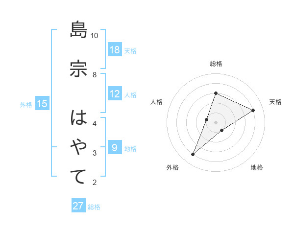 島宗 はやてさんの総格は27画の3点!