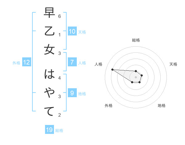 早乙女 はやてさんの総格は19画の1点