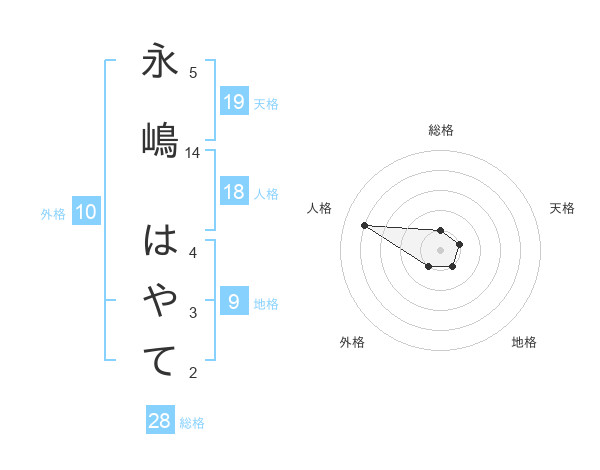 永嶋 はやてさんの総格は28画の1点!