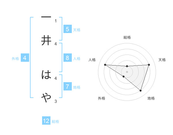 一井 はやさんの総格は12画の1点!