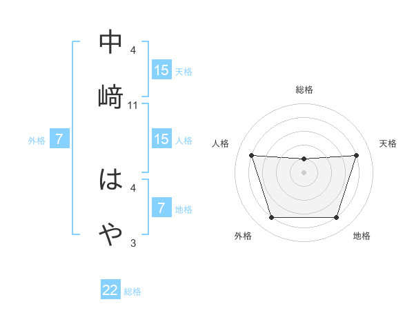 中﨑 はやさんの外格は7画の4点!