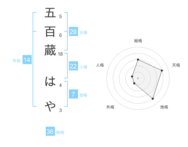 五百蔵 はやさんの地格は7画の4点!