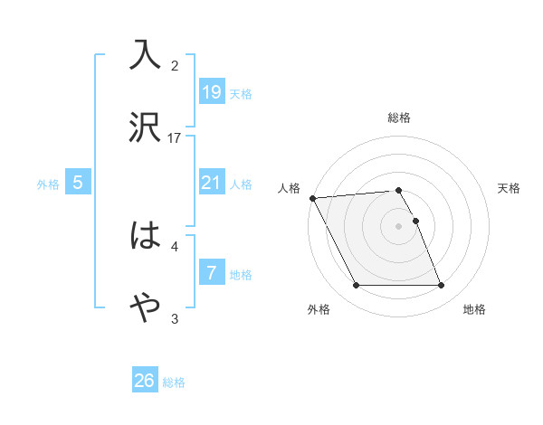 入沢 はやさんの天格は19画の1点!