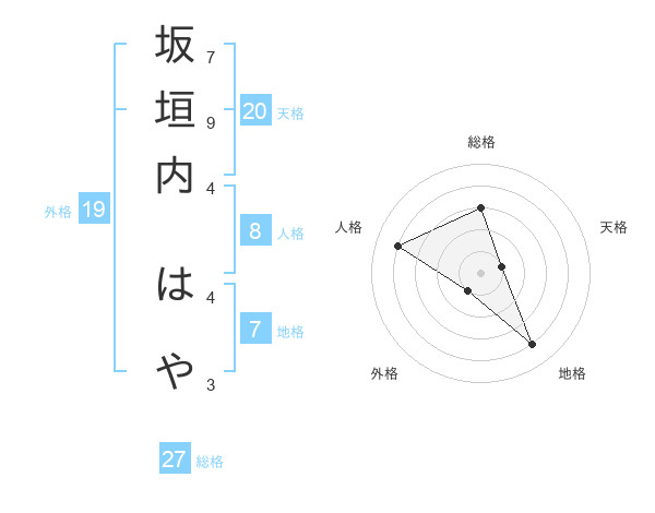 坂垣内 はやさんの外格は19画の1点!