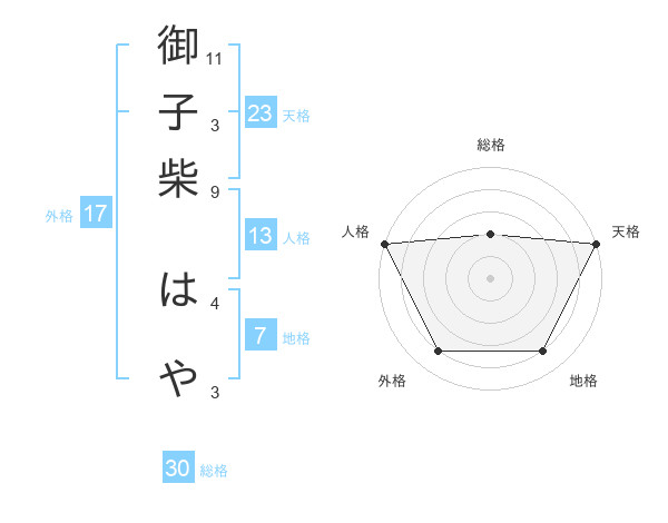 御子柴 はやさんの天格は23画の5点!