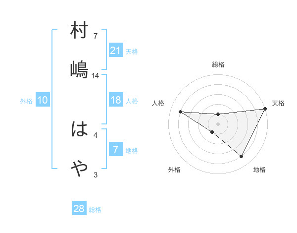 村嶋 はやさんを姓名の画数から五運を鑑定