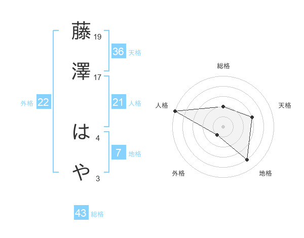 藤澤 はやさんの総格は43画の2点!