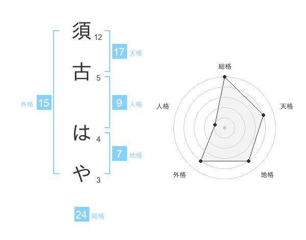 須古 はやさんの天格は17画の4点!