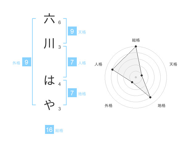 六川 はやさんの総格は16画の5点!