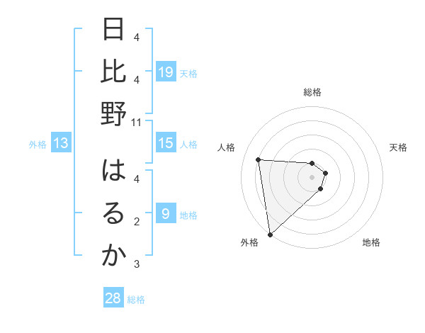 日比野 はるかさんを姓名の画数から五運を鑑定