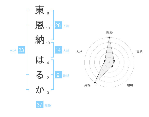 東恩納 はるかさんを姓名の画数から五運を鑑定