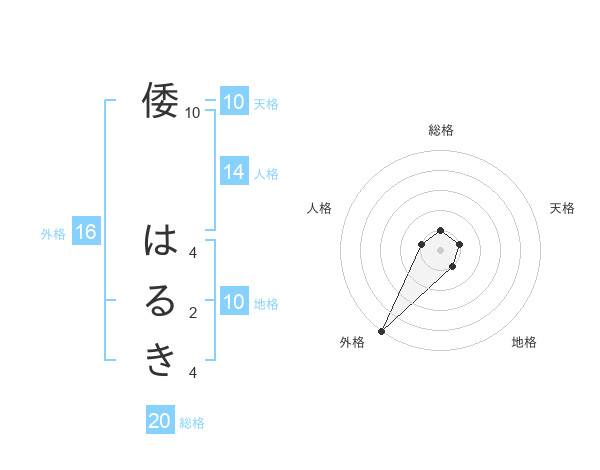 倭 はるきさんの総格は20画の1点!