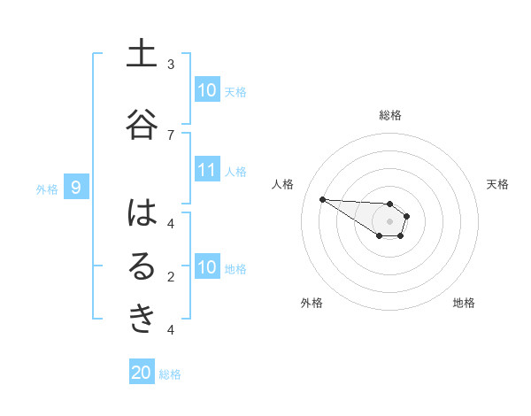 土谷 はるきさんを姓名の画数から五運を鑑定