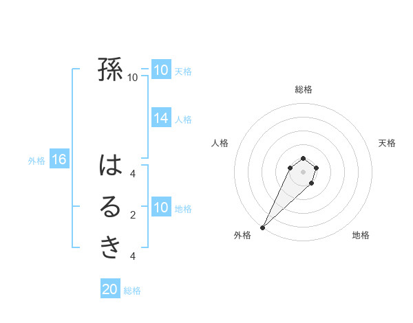 孫 はるきさんの総格は20画の1点!