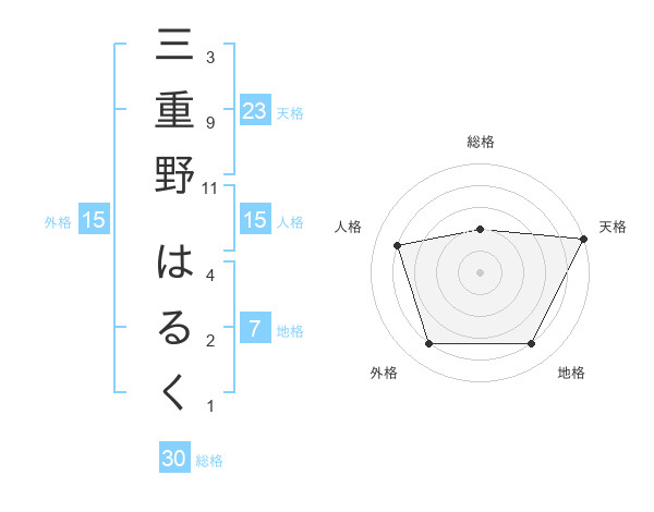三重野 はるくさんを姓名の画数から五運を鑑定