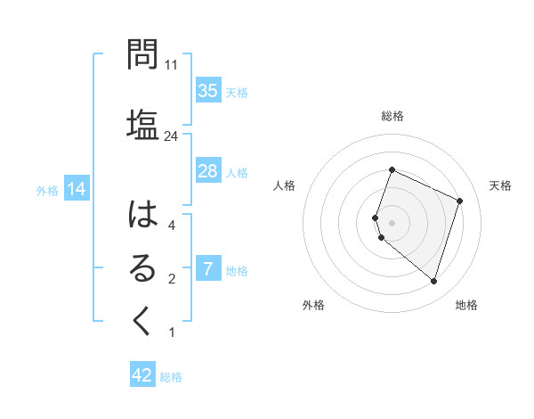問塩 はるくさんの総格は42画の3点!
