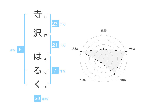 寺沢 はるくさんの天格は23画の5点!