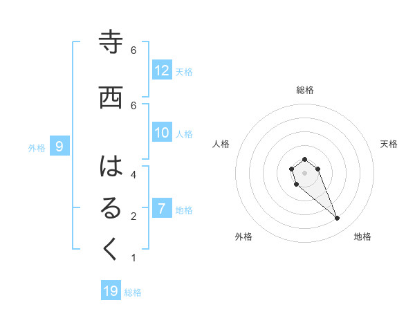 寺西 はるくさんを姓名の画数から五運を鑑定