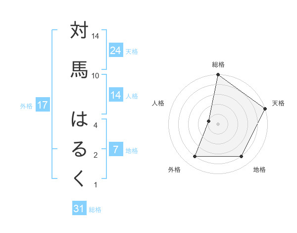 対馬 はるくさんを姓名の画数から五運を鑑定