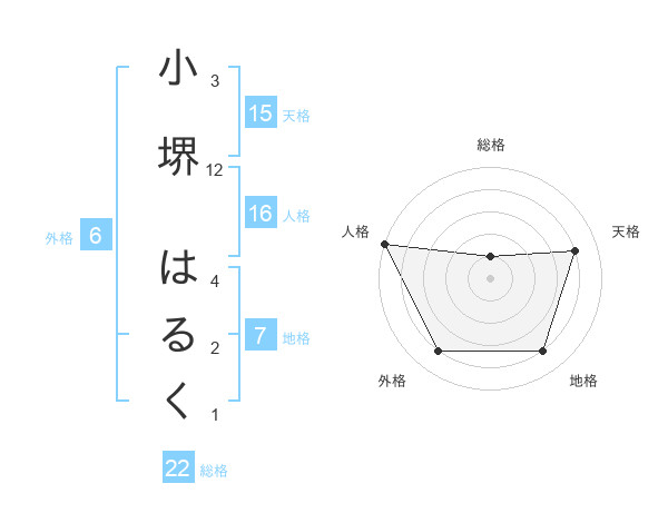 小堺 はるくさんを姓名の画数から五運を鑑定
