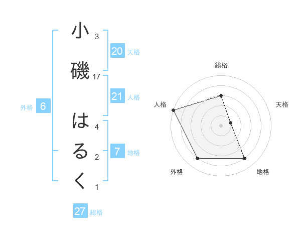 小磯 はるくさんを姓名の画数から五運を鑑定