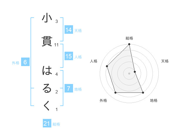 小貫 はるくさんを姓名の画数から五運を鑑定