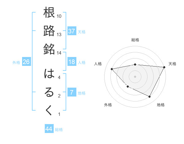 根路銘 はるくさんの天格は37画の5点!