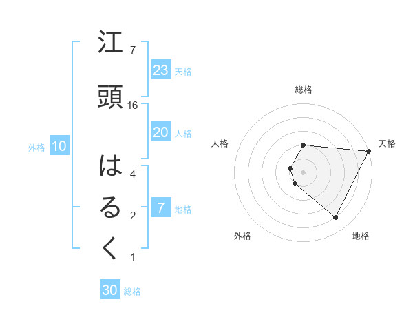 江頭 はるくさんを姓名の画数から五運を鑑定