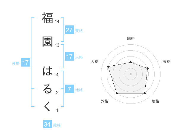 福園 はるくさんの外格は17画の4点!