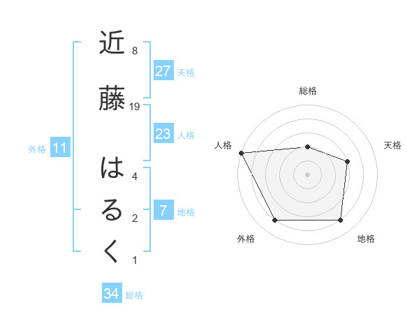 近藤 はるくさんを姓名の画数から五運を鑑定