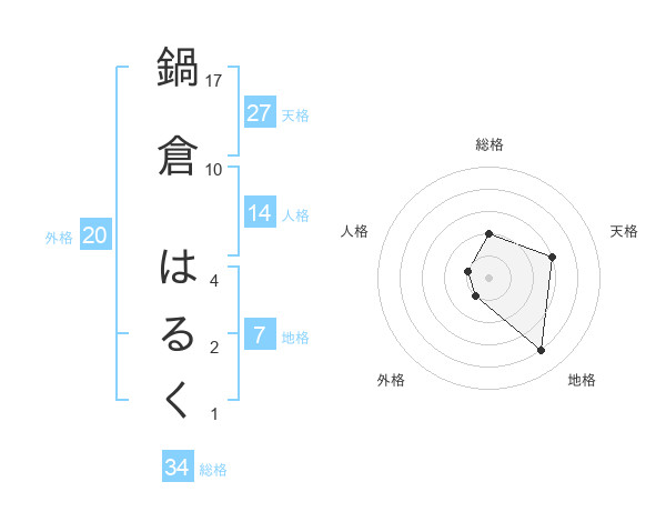 鍋倉 はるくさんを姓名の画数から五運を鑑定
