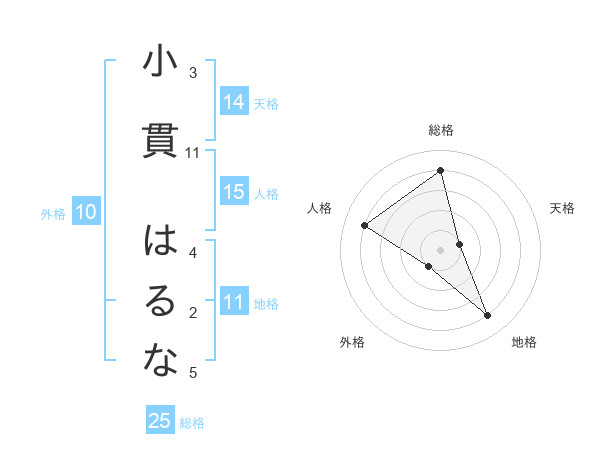 小貫 はるなさんを姓名の画数から五運を鑑定