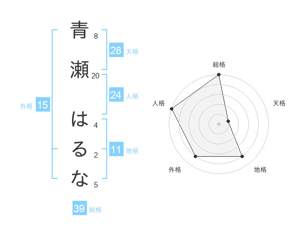 青瀬 はるなさんの天格は28画の1点!
