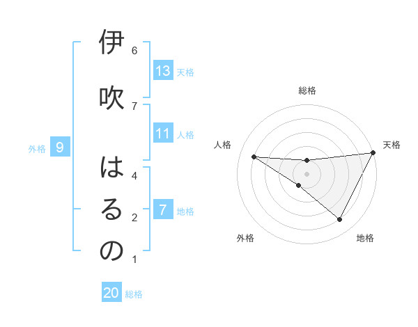 伊吹 はるのさんの天格は13画の5点!