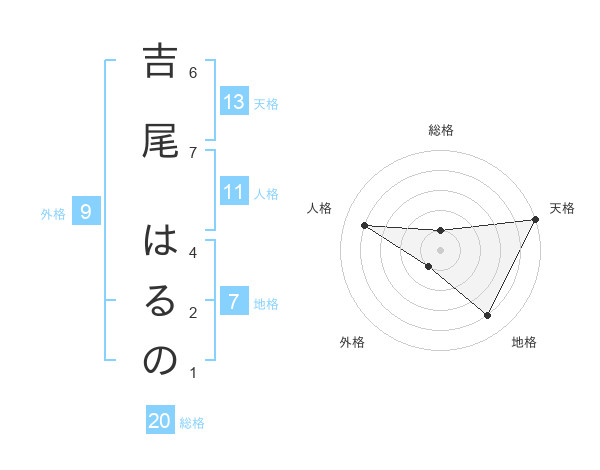吉尾 はるのさんを姓名の画数から五運を鑑定