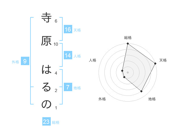 寺原 はるのさんの天格は16画の5点!