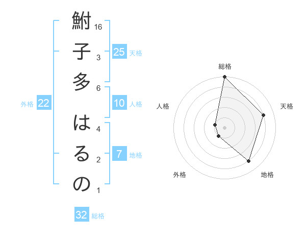 鮒子多 はるのさんの総格は32画の5点!