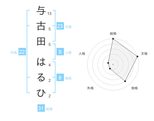 与古田 はるひさんを姓名の画数から五運を鑑定