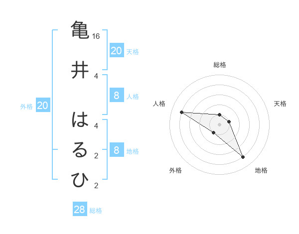 亀井 はるひさんを姓名の画数から五運を鑑定
